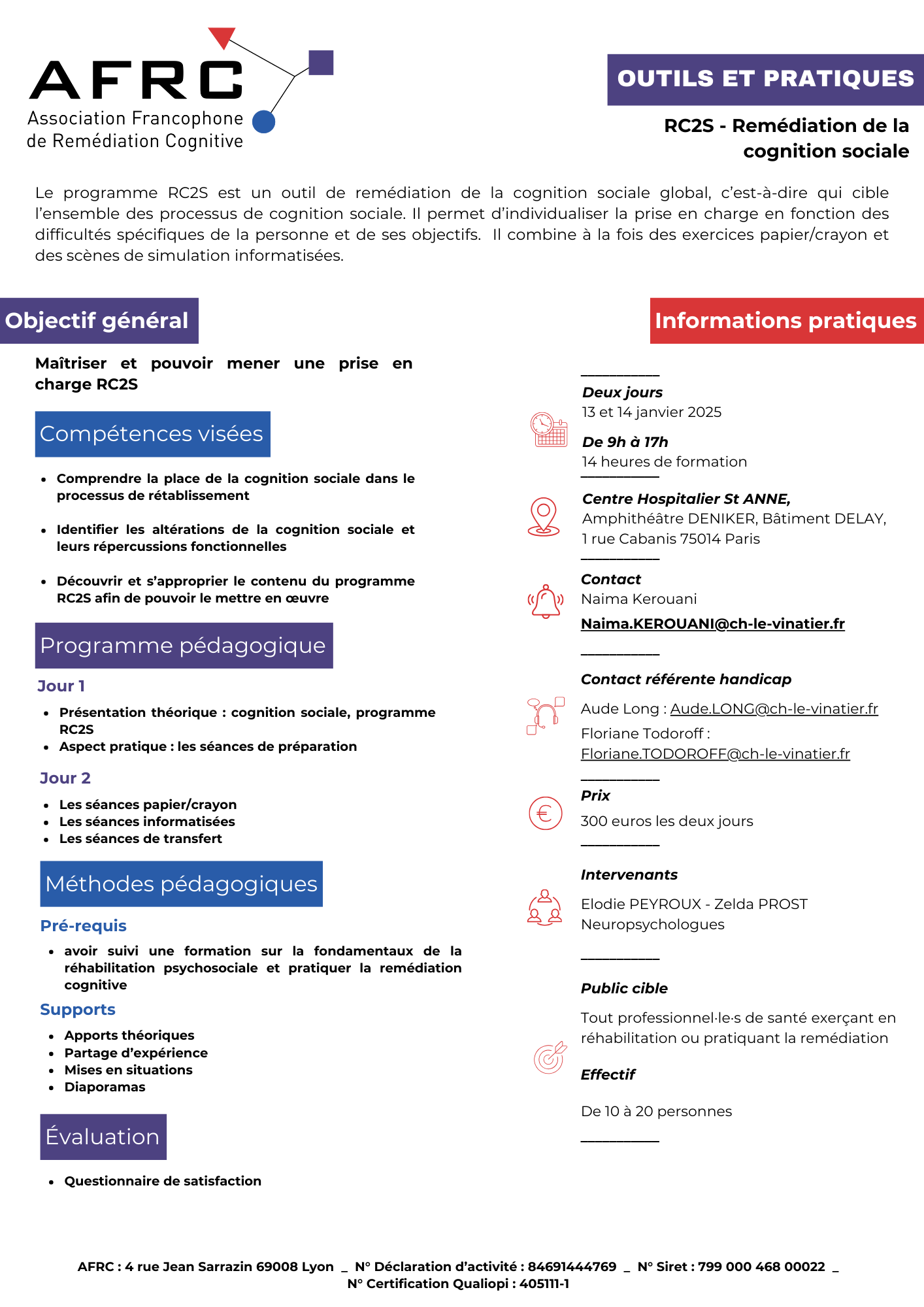 AFRC : 4 rue Jean Sarrazin 69008 Lyon _ N° Déclaration d’activité : 84691444769 _ N° Siret : 799 000 468 00022 _ N° Certification Qualiopi : 405111-1